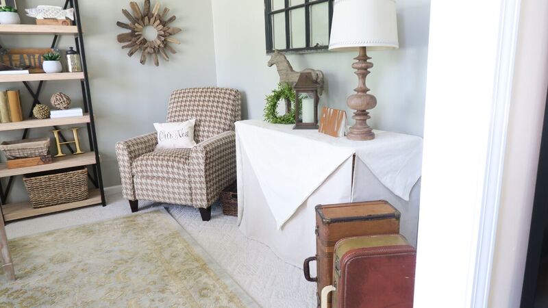 I present to you, the home office parlor! It’s not a full on home office but it’s right off my entry like the parlor of yesteryear. I keep my laptop charging in here most of the time, unless the grand kids (a.k.a. The Little’s) are coming over, then I scoop it away to its second home and charging station, and the real work horse home office that I have in a converted closet. (I’ll get to that in coming posts) Also, that covered console table serves as a changing table, with a quick clearing and added changing pad that is stored just underneath, along with extra diapers in various sizes (cause my Little’s are like stair steps) and of course, where else would one store tons of extra candles and the paraphernalia that go along with them. You will find out that I LOVE multi purpose rooms!